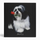 A Shih Tzu Dog Breed Photograph holding a rose in his mouth.