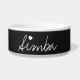 Customized name bowls for pets is created in a 'white chalk on black board' style. There is a white heart placed over the 'i'. If your pet's name does not have an 'i' in the spelling, this heart image can be removed or simply enlarged and placed elsewhere on the mug.