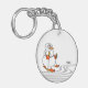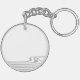 This is an image of a snowman skiing down a hill of snow. He has an orange carrot for a nose and is wearing a pair of red gloves. He is skiing with red and yellow skis and orange poles. A swirly snow is on the reverse side of the keychain if applicable. These keychains come in assorted styles, and sizes. Customize with your own words.