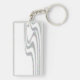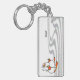 This is an image of a snowman skiing down a hill of snow. He has an orange carrot for a nose and is wearing a pair of red gloves. He is skiing with red and yellow skis and orange poles. A swirly snow is on the reverse side of the keychain if applicable. These keychains come in assorted styles, and sizes. Customize with your own words.