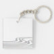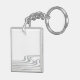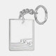 This is an image of a snowman skiing down a hill of snow. He has an orange carrot for a nose and is wearing a pair of red gloves. He is skiing with red and yellow skis and orange poles. A swirly snow is on the reverse side of the keychain if applicable. These keychains come in assorted styles, and sizes. Customize with your own words.