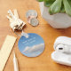 The sky is the limit keychain with slogan. Blue sky White clouds background.
