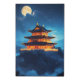 Experience the breathtaking magic of an ancient Chinese palace, illuminated against a deep, star-strewn night sky. Perched high on a misty mountain peak, this magnificent tiered pagoda glows with a warm, golden light beneath a vast, luminous full moon. This stunning, atmospheric artwork captures a scene of tranquility and profound fantasy. Perfect for adding a touch of Asian fantasy, mystical architecture, and dramatic night scenery to any room. A truly unforgettable piece for collectors of oriental art and celestial landscapes.