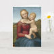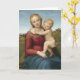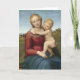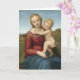 The Small Cowper Madonna (c. 1505) by Raphael is a Renaissance masterpiece that depicts the Virgin Mary tenderly holding the Christ Child in a serene landscape. The painting exemplifies Raphael’s signature style, characterized by soft modeling, harmonious composition, and delicate color transitions. Mary, dressed in a red gown with a blue mantle, gazes gently at the viewer while the infant Jesus sits comfortably on her lap, symbolizing maternal love and divine grace. The tranquil countryside in the background enhances the painting’s sense of peace and natural beauty, reflecting the influence of Leonardo da Vinci and Raphael’s deep devotion to religious themes.