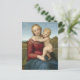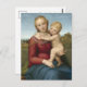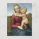 The Small Cowper Madonna (c. 1505) by Raphael is a Renaissance masterpiece that depicts the Virgin Mary tenderly holding the Christ Child in a serene landscape. The painting exemplifies Raphael’s signature style, characterized by soft modeling, harmonious composition, and delicate color transitions. Mary, dressed in a red gown with a blue mantle, gazes gently at the viewer while the infant Jesus sits comfortably on her lap, symbolizing maternal love and divine grace. The tranquil countryside in the background enhances the painting’s sense of peace and natural beauty, reflecting the influence of Leonardo da Vinci and Raphael’s deep devotion to religious themes.