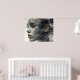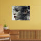 A young woman with a veil of black and white smoke on her face.