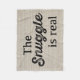 Snuggle up with this awesome blanket. This design features "The Snuggle Is Real" pretty black typography on a light wood textured background.