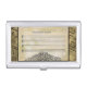 The Sound of Silence. A pile of music notes appears below four empty treble staffs, with layered vintage sheet music as background. Music lover business card case is a perfect gift idea for a music teacher, orchestra player, music student, DJ, choir member, string instrument player, or musician, including banjo, bass, cello, harp, guitar, piano, ukulele, viola, violin!