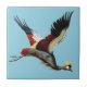 This 19th-century color lithograph, created in a naturalistic style, captures the South African crowned crane (Balearica regulorum) in mid-flight. The crane's wings are spread wide like a fan, with orange-brown crown feathers contrasting sharply against its red and black wings. The intricate gradient details of its grey-white feathers are delicately rendered through multi-color lithographic printing, showcasing both the species' features and dynamic beauty. Symbolically, the crane's soaring flight represents freedom and vitality, and its vibrant colors and elegant form are often regarded as sacred to African cultures. As a scientific illustration, this work has both academic and artistic value—documenting biological accuracy while conveying the beauty of nature. It reflects the typical function of 19th-century natural history illustrations, using visual art to promote scientific knowledge.