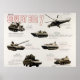 A Cold War-era poster providing information on the seven leading military systems of the Soviet Union: tanks, attack helicopters, mechanized artillery, missile platforms, and anti-aircraft guns.