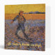 The Sower by Vincent van Gogh is a vintage fine art post impressionism daily life portrait painting featuring a peasant farmer on a farm and sowing seeds in his field at sunrise.
