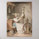 "La Fileuse" or "The Spinner" print of a watercolour by Swiss artist Sigmund Freudenberger, 1700's.