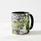A wrap around mirror image or a perky lorikeet in a wisteria jungle. Infinity symbol prints where the images meet. Looks cool on the frosted mug, the ringer, and the classic white as well.