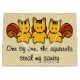"One by one, the squirrels steal my sanity" - Funny and cute squirrels staring. Cute design with three squirrels driving you crazy. With a beige background color that you can customize and change.
