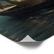 In this enchanting fantasy print, a man stands in a boat on a tranquil, otherworldly sea under a resplendent starry night, capturing sparkling stars with a net to gift his beloved.