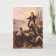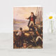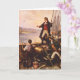 Francis Scott Key standing on boat, with right arm stretched out toward the United States flag flying over Fort McHenry, Baltimore, Maryland.