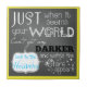 An inspiring message of hope with various fonts on a chalkboard look background reads Just when it seems your world can't get any darker look to the heavens and watch the stars appear!