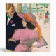 Artist:Joe Bowler | A man in a suit and a woman in a pink dress and hat standing by the shore of a lake