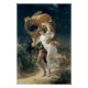 The Storm by Pierre Auguste Cot, oil on canvas 1880, is a French academic classical painting of two young people running to take shelter from a storm, brightly lit against a darkened forest landscape, a billowing piece of fabric shielding them against the rain. Cot combines a modern realism that borders on the photographic with inspiration from sources in classical antiquity, such as the shepherd costume from the ancient world and the girl’s diaphanous drapery. The Storm was commissioned as a type of companion piece to Cot’s other large painting of young lovers, Springtime, both of which became enormously famous in Europe and America.