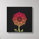 Warm yellow orange red and pink sunflower against a black background. Bold and simple original design.