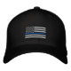 The symbolic Thin Blue Line on a US Flag embroidery. A great embroidered hat gift idea for memorial and remembrance occasions.