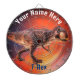 The T-Rex ProfiledInk Dart Board with Bull's-eye! It's the perfect custom dart board to add your name to. Featuring vibrant color printing, this regulation-size dart board is easily customized with your text. Add a name to this design for a great gift or the perfect addition to your game room, this dartboard will hit its mark! This regulation dartboard measures 18 inches in diameter, and 1 inch high. Includes 6 brass darts (3 American flag dart flights and 3 UK dart flights) Vibrant, full-color printing and finished with aluminum frame and hanging hook. This product is recommended for ages 14+.