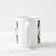 A bold graphic design mug for the avid tea lover. skeletal hand holding tea cup with floral edges. Black and white.