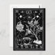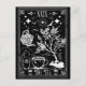 Grunge tarot card design for tea lovers! The Tea. White and black illustration with a teapot pouring water into a tea cup, tea bush, and skeleton.