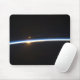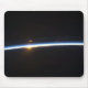 The thin line of Earth's atmosphere and the rising sun featured with horizon.