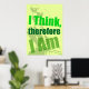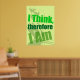 A print of Rodin's "The Thinker" with Descarte's famous quote in green