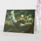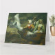 This Gothic card is illustrated with three Gothic surreal witches being pulled through the air by a swan.