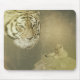 Pictured watching a kitten playing with a rock in the snow is a bengal tiger