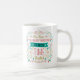 A modern typography ceramic mug design of the quote 'The time you enjoy wasting is not Time wasted' decorated with swirls and ornaments in bright, cheerful colors. Search ID472 to see more products with this design.