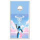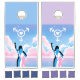 Feminine silhouettes stand beneath a cotton candy sky with a white transgender symbol in the sky like the bat signal, it has a heart in the middle.