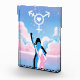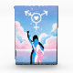 Feminine silhouettes stand beneath a cotton candy sky with a white transgender symbol in the sky like the bat signal, it has a heart in the middle.