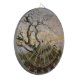 This design features a painting by the German Romantic artist Caspar David Friedrich (1774–1840). It shows a twisted oak tree seen against a colorful sky as night starts to fall. The tree is bare, except for a few dead leaves. The hill in the background is an ancient burial ground. Further back, the seashore and ocean can be seen, as well as Cape Arkona, a natural landmark in in Mecklenburg-Vorpommern, Germany. A couple of crows are perched on the tree, while many more birds can be seen in the sky, ready to swoop down on it. The original artwork was painted circa 1822 by Caspar David Friedrich; it is now housed in the Musée du Louvre, Paris, France.