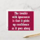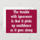 If you're bothered by stupidity (and who isn't?) then you'll appreciate the sentiment behind this humorous line: "The trouble with ignorance is that it picks up confidence as it goes along."