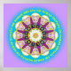 Digital mandala with images of Babaji, lotus, religious symbols, and the Om Namah Shivaya mantra with a solid lavender background as a poster.