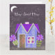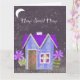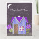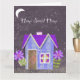 Experience the quiet magic of "Home Sweet Home" at night. This digital collage transforms the classic cottage design into a serene twilight scene, using a palette of moody periwinkles, deep indigo stripes, and a royal purple polka-dot roof. Set against a textured, starry sky with a glowing crescent moon, this piece evokes a sense of peace and wonder. The hand-cut floral accents in shades of violet add a touch of mystery, making this design a beautiful addition to a cozy reading corner, a peaceful bedroom, or any space where you want to invite a sense of calm and whimsy.