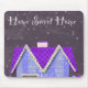 Experience the quiet magic of "Home Sweet Home" at night. This digital collage transforms the classic cottage design into a serene twilight scene, using a palette of moody periwinkles, deep indigo stripes, and a royal purple polka-dot roof. Set against a textured, starry sky with a glowing crescent moon, this piece evokes a sense of peace and wonder. The hand-cut floral accents in shades of violet add a touch of mystery, making this design a beautiful addition to a cozy reading corner, a peaceful bedroom, or any space where you want to invite a sense of calm and whimsy.