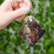 The key chain is made of metal and really sturdy. The flower design is really cheerful. The logo and colors are clear and crisp!