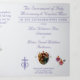 With explanations of the Mass displayed throughout, this elegant design also includes the name of the wedding officiant, names of altar servers, names of the parents of the bride and parents of the groom, wedding party names including the names for a maid-of-honor and best man, room for up to seven bridesmaids and groomsmen names, plus the names of the flower-girl and ring bearer.