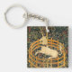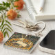 Keychain featuring the medieval tapestry The Unicorn in Captivity (1495-1505). The seventh tapestry in The Unicorn Tapestries—also known as The Unicorn Rests in a Garden—shows a white unicorn with a blue collar sitting inside a fence. Green grass and beautiful flowers surround the unicorn. A fantastic gift for medieval art collectors and fantasy lovers!