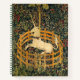 Notebook featuring the medieval tapestry The Unicorn in Captivity (1495-1505). The seventh tapestry in The Unicorn Tapestries—also known as The Unicorn Rests in a Garden—shows a white unicorn with a blue collar sitting inside a fence. Green grass and beautiful flowers surround the unicorn. A fantastic gift for medieval art collectors and fantasy lovers!