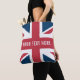 Tote bag with The Union Jack flag design. This United Kingdom flag design is a great way to show you are proud to be British.