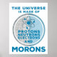 Are you sure the universe is full of idiots? Are there too many morons for your taste? Then this is a great product for you or to give to friends, family and colleagues. The Universe is made of Protons, Neutrons, Electrons and Morons.