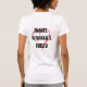 My overall review is that the T-shirt is nice, it fits true to size however the font is significantly smaller than advertised and you can't read it. The printing is unreadable and there is a strain to read it. It does not look like the advertised product. Maybe the shirt color is darker or a larger more visible font should have been used. Photos with and without flash and font is barely legible.