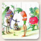 He scampered off his little coat to dry, Shouting the news to every passer-by, The baby onions gathered, full of glee, And tall asparagus bent down to see The pretty sight: All felt delight, Though cabbage friend looks sad-faced you’ll agree. Whimsical illustration by Florence Kate Upton from the book “The Vege-Men’s Revenge”, published in 1897, with verses by Bertha Upton.