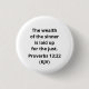 The Wealth of the Sinner Is Laid Up for the Just. Proverbs 13:22 (KJV) Button. This item is inspired by the King James Version of Proverbs 13:22, "A good man leaveth an inheritance to his children's children: and the wealth of the sinner is laid up for the just."