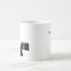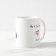 A charming and whimsical illustration of the wedding by using silhouettes of the wedding attire displayed in the pose of a traditional wedding photo: the wedding dress, groom’s tux, best man’s suit and bridesmaids' dresses. The other side of the mug shows the customisable name of the newly-weds and their wedding date.
